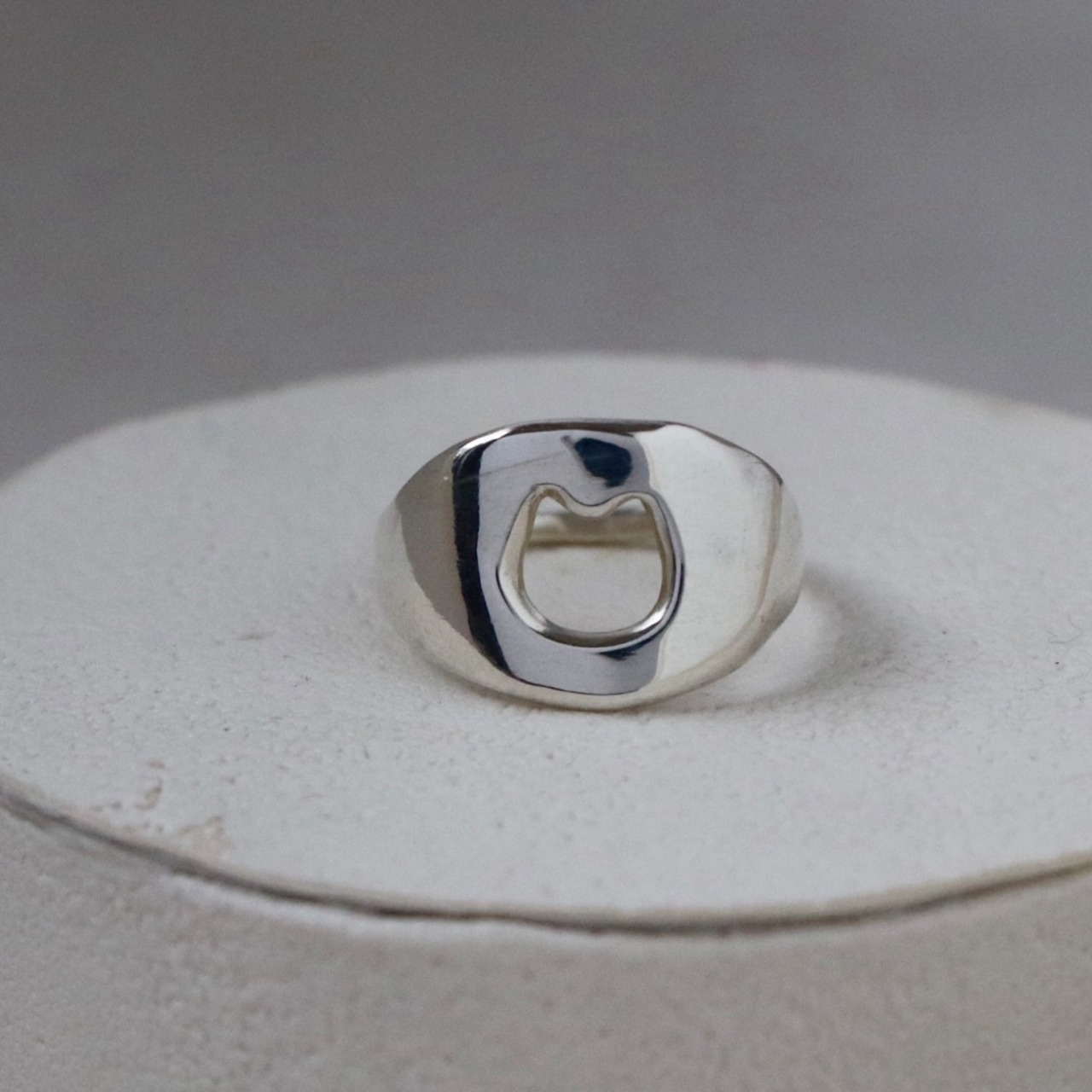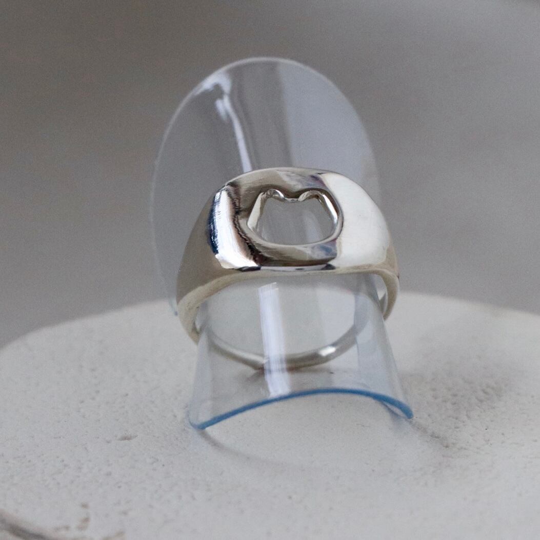 透かし模様で描かれた猫のシルエットが指先を飾るリング。