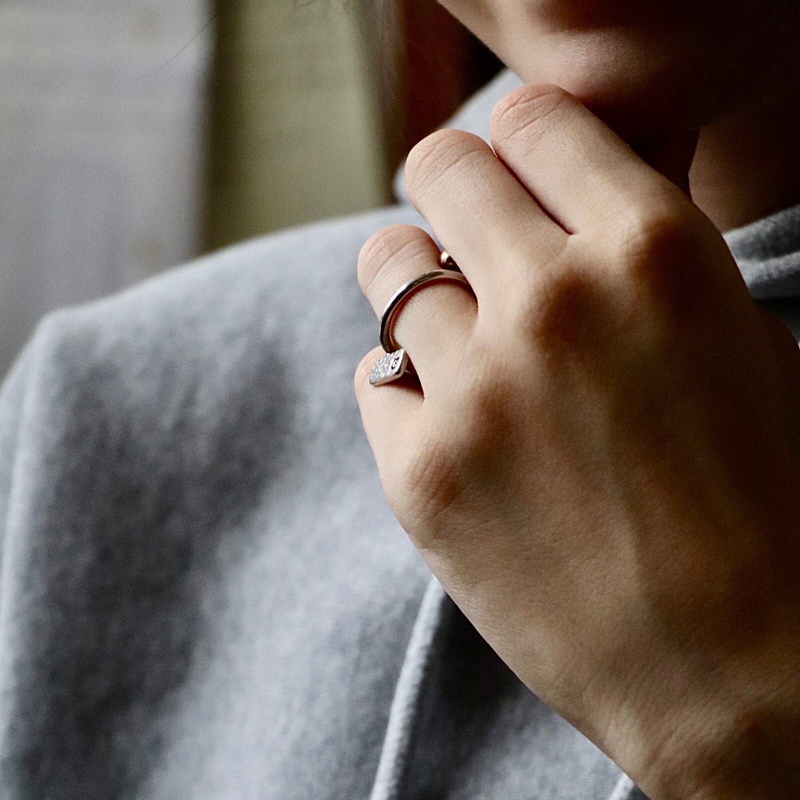 くるりと螺旋を描きながら、指先を軽やかに巡るリング。