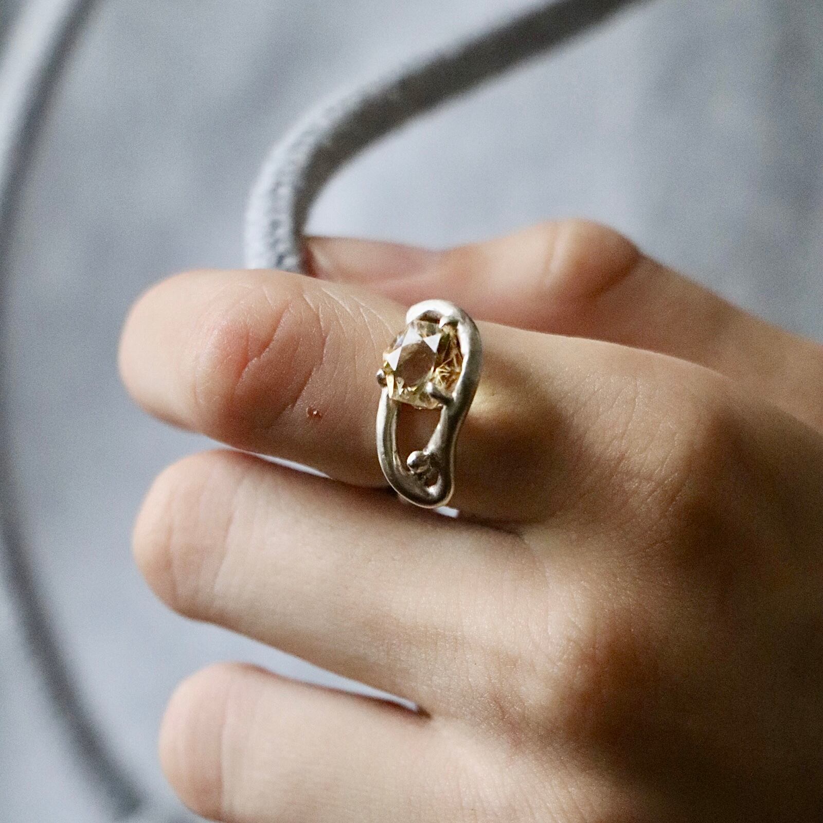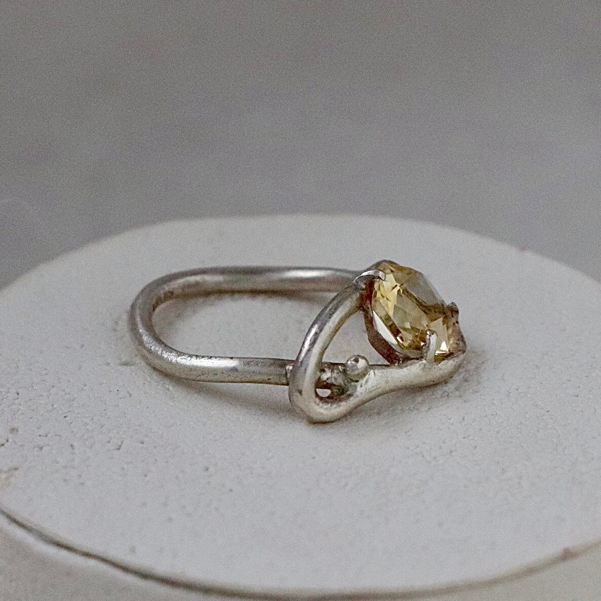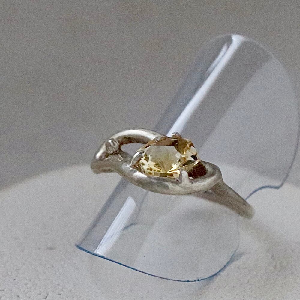 柔らかな薄いイエローの輝きを宿したシトリンのリング。