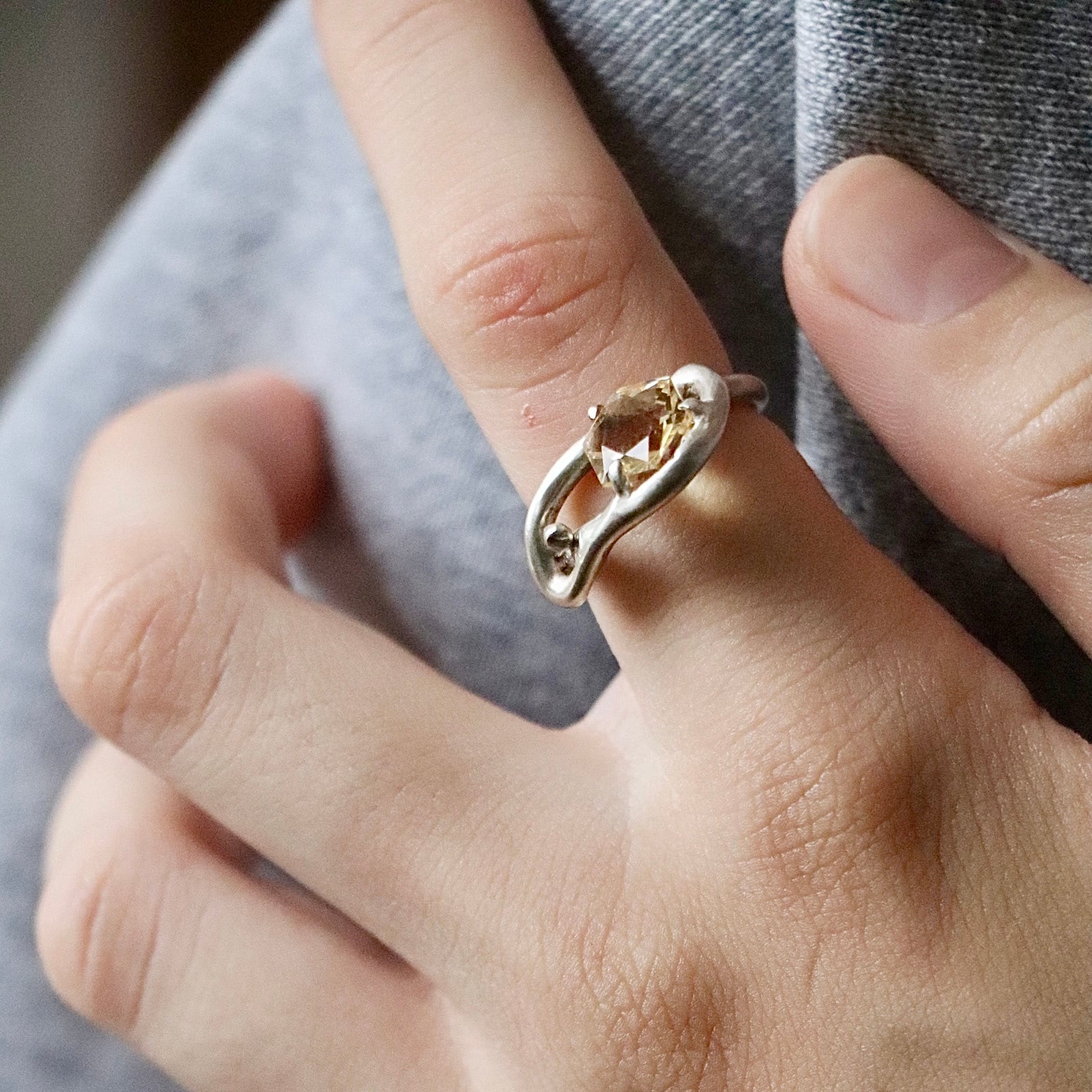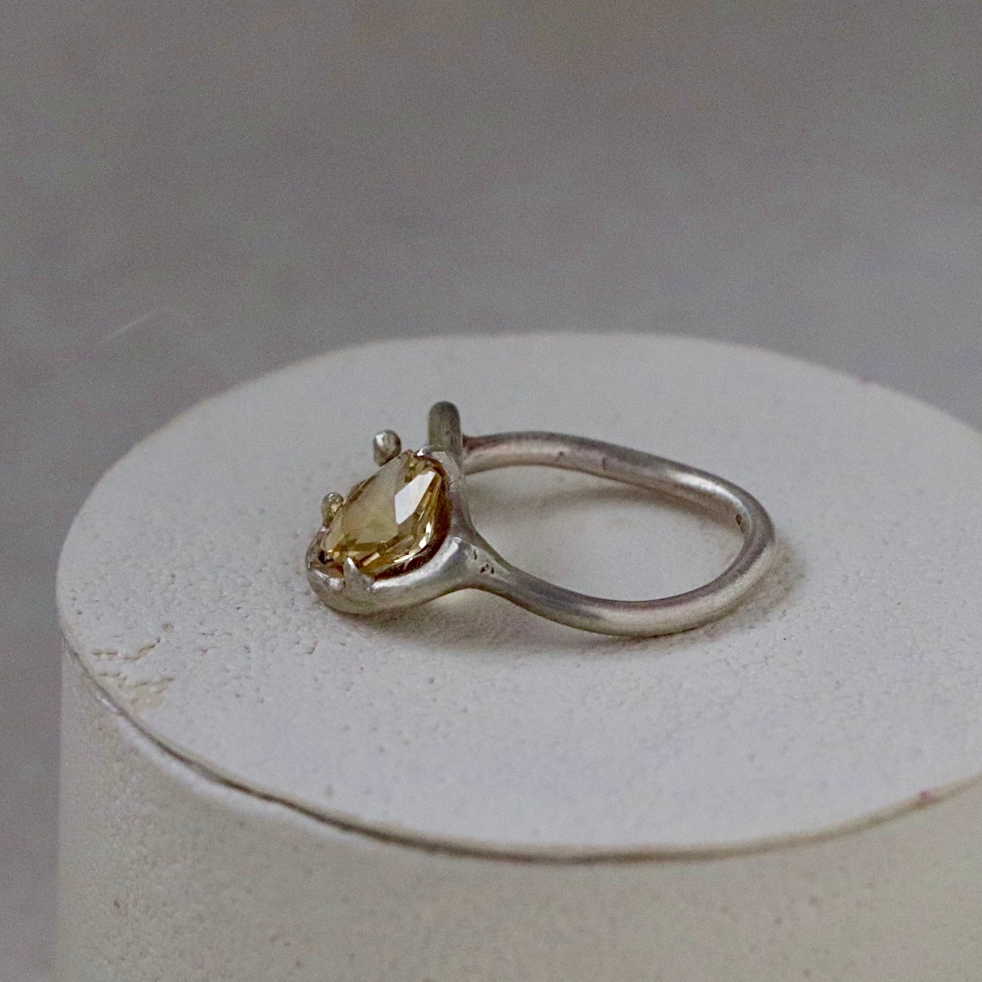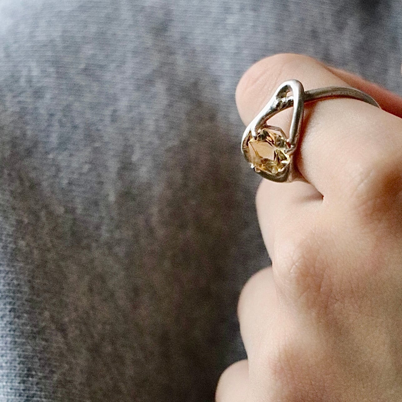 柔らかな薄いイエローの輝きを宿したシトリンのリング。