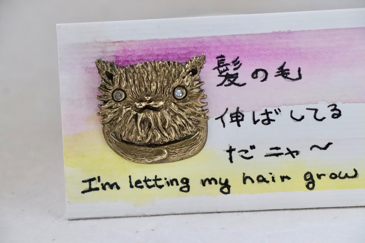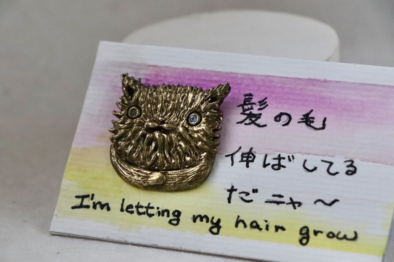 Cat Brooch : “I’m letting my hair grow” ・「髪の毛伸ばしてるだにゃ〜」ブローチのアクセサリーです。