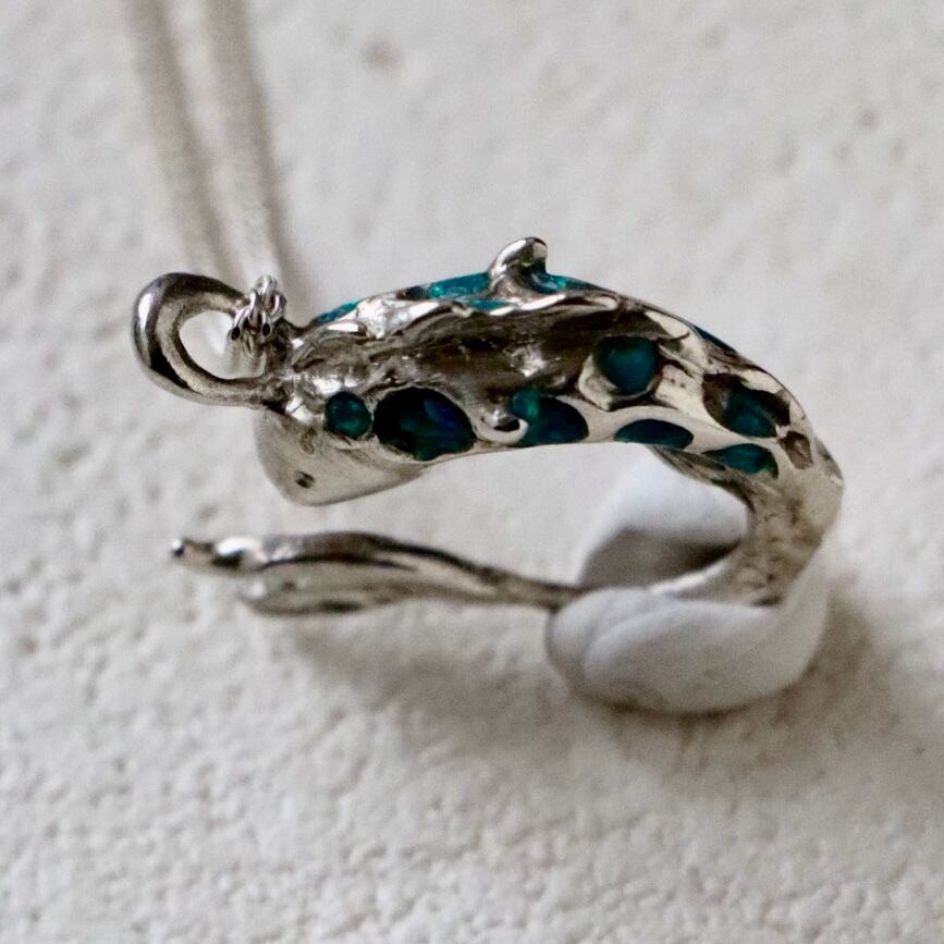 丁寧にワックスの型から作り上げた、立体的なシルバーの鯉モチーフジュエリーです。