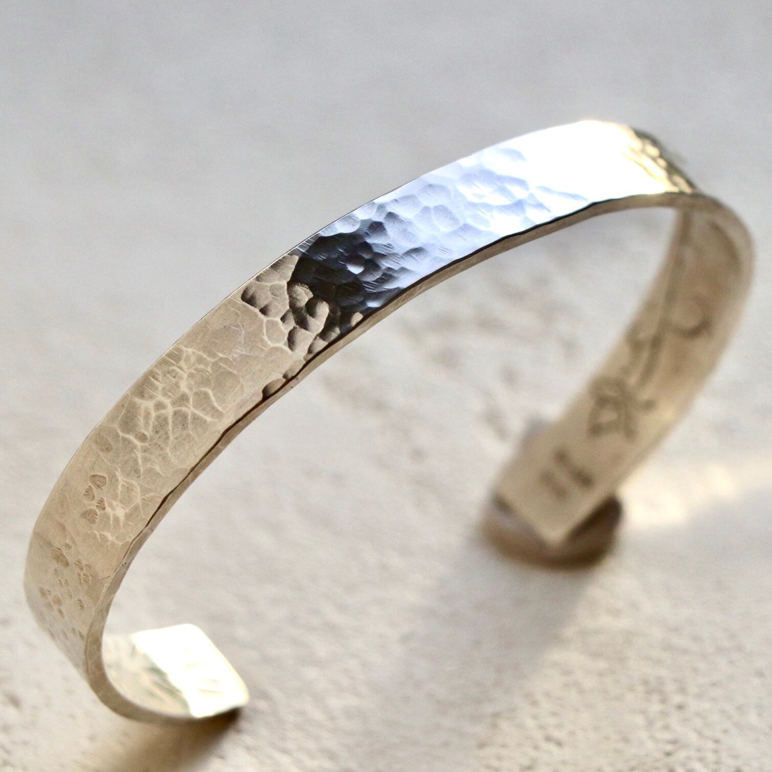 地金から丁寧に仕上げた、ユニセックス仕様のフリーサイズバングル。