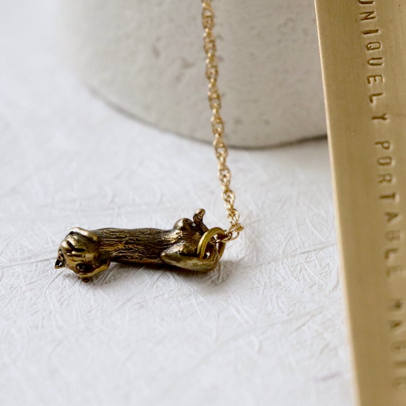 魔法を持ち運ぶ、真鍮のしおり:甘え猫と赤いポンポン、ページを開くたび、小さな冒険が始まります。
