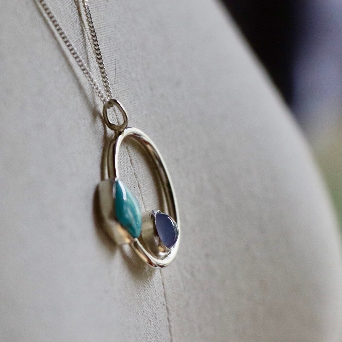 Planets in orbit pendant・ターコイズとブルーカルセドニー・ネックレス60cm(アジャスター付)