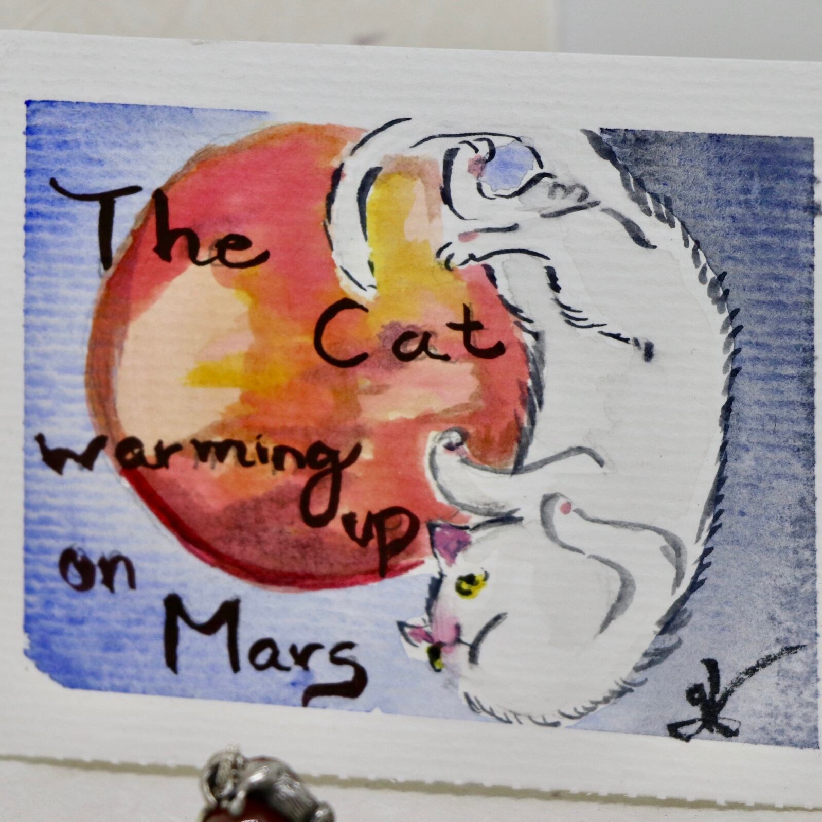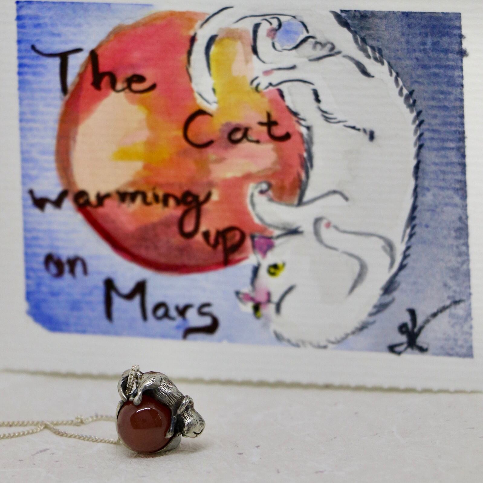Cat warming on Mars『火星で温もる猫』は、惑星ねこシリーズの一つで、柔らかい体を気持ち良さそうに火星の上に乗せて温もっている猫を表現しています。まるで宇宙の中を冒険するような気分にさせてくれるデザインです。猫好きな方や夢見がちな方にぴったりのアイテムです。